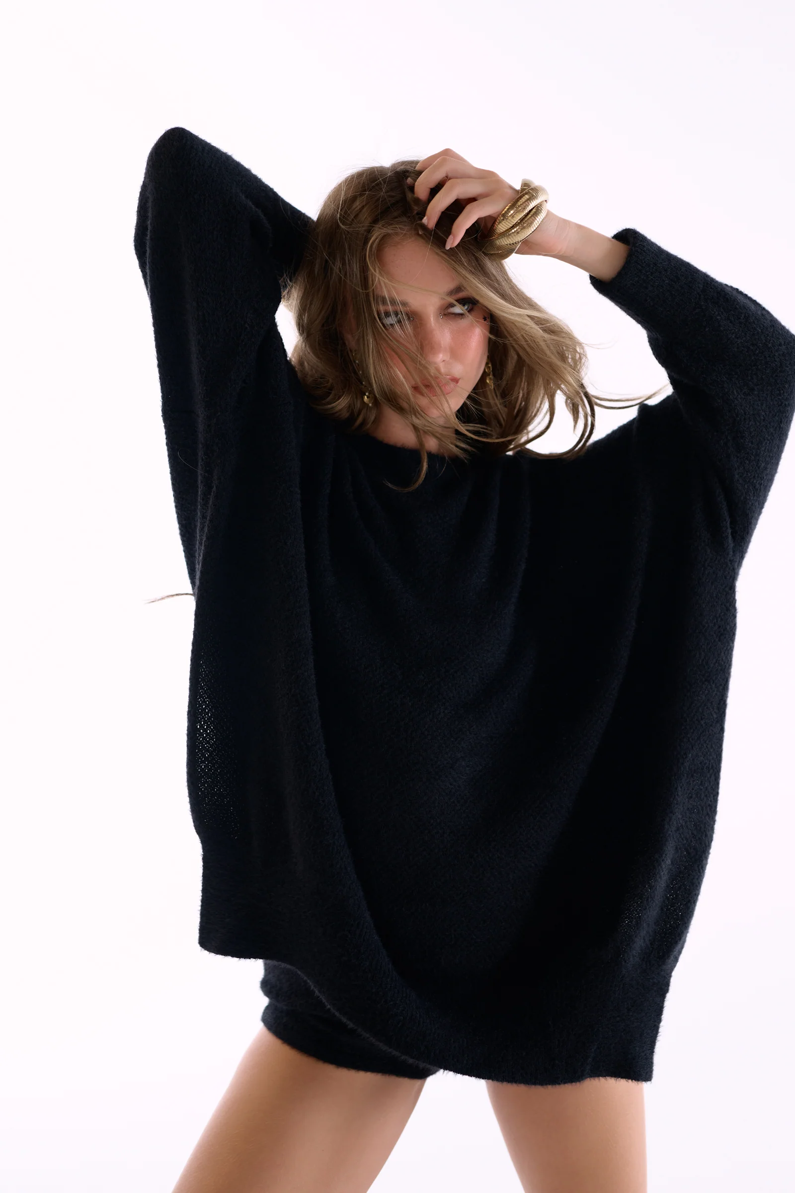 Ballet fuzz oversized knit sweater, mini shorts, and leg warmers set