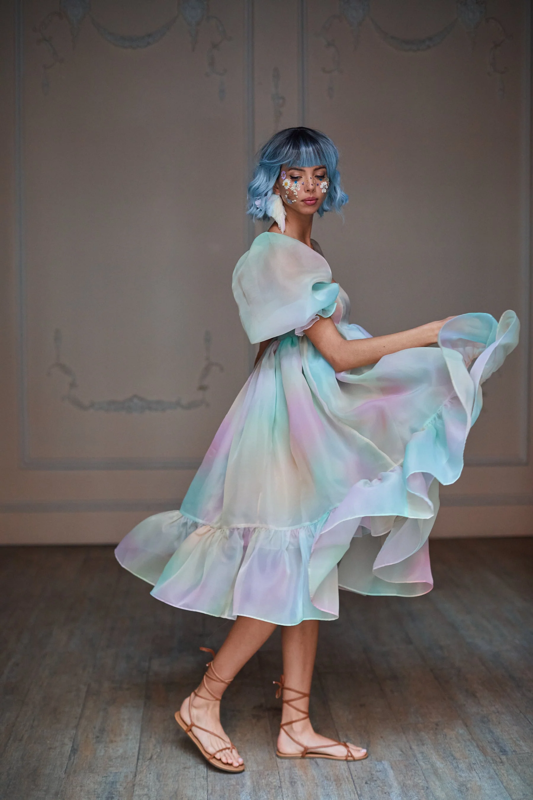 This gorgeously frothy dress is perfect for spinning through the city, dancing on roof tops, or standing out at the party. Imagined in Italy, dancing barefoot on the Trevi fountain...